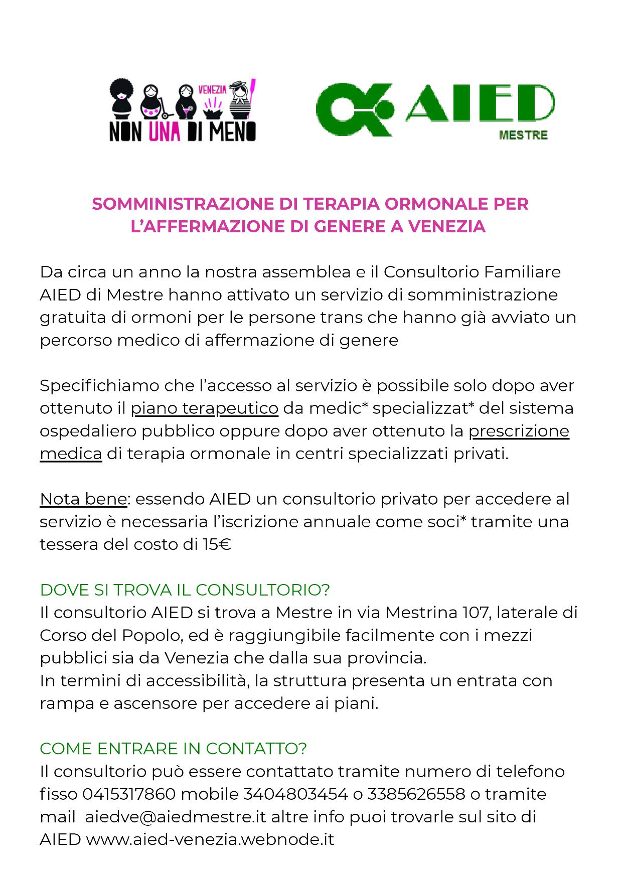 NUOVO SERVIZIO DA INIZIO 2025 in collaborazione con l'associazione NON UNA DI MENO